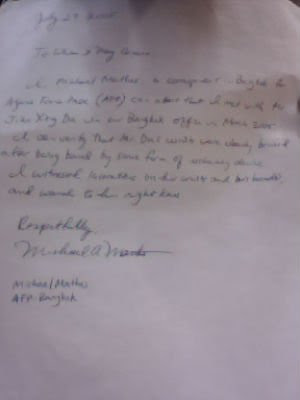 我迈克尔.马特斯,一位法新社驻曼谷的记者可以证实我于2005年3月在我们曼谷办公室见到过杜建雄先生。